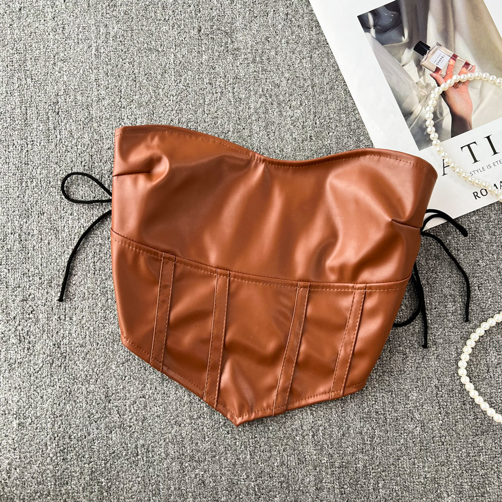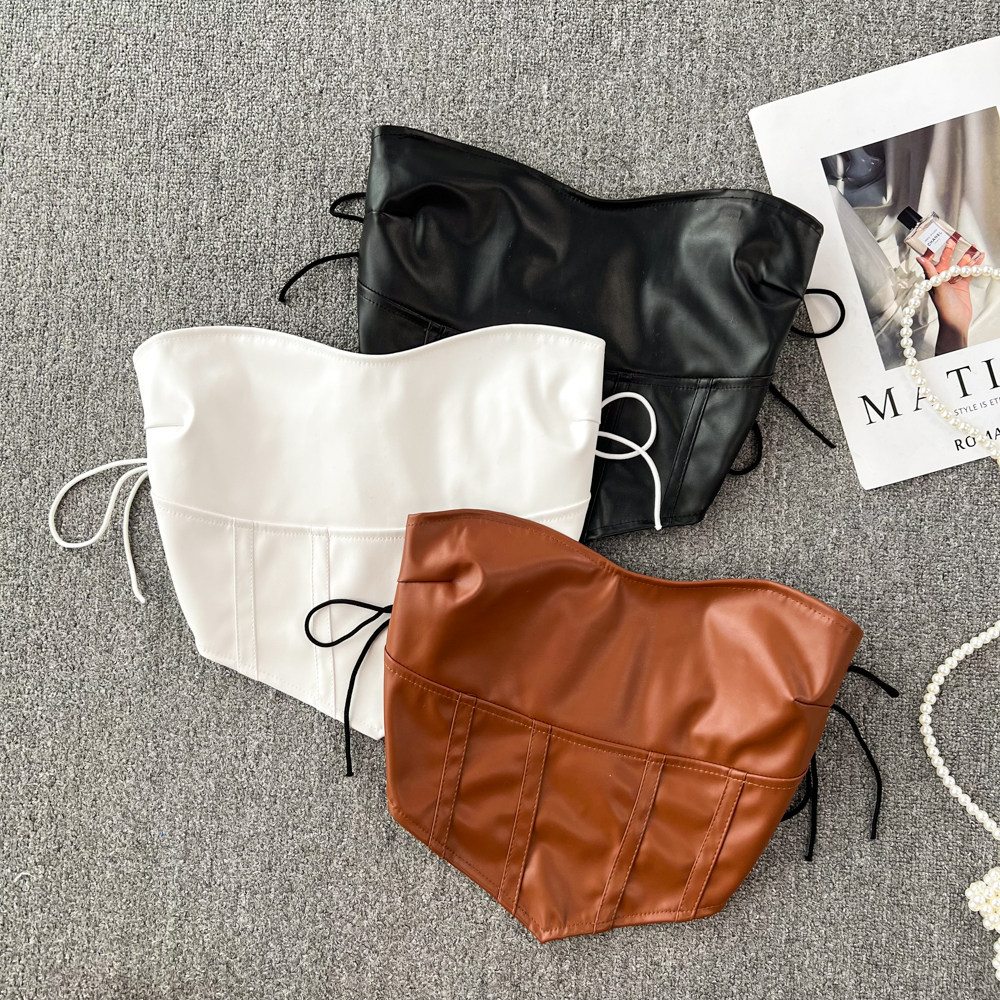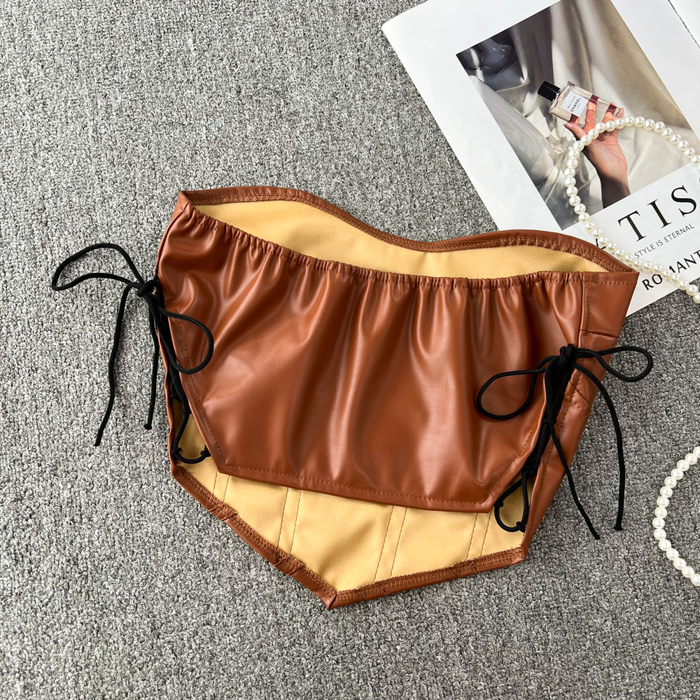 Ретро полиуретановые бретели, топ без лямок, бюстгальтер-топ, приталенная майка топ, короткая футболка без рукавов, в американском стиле, в западном стиле