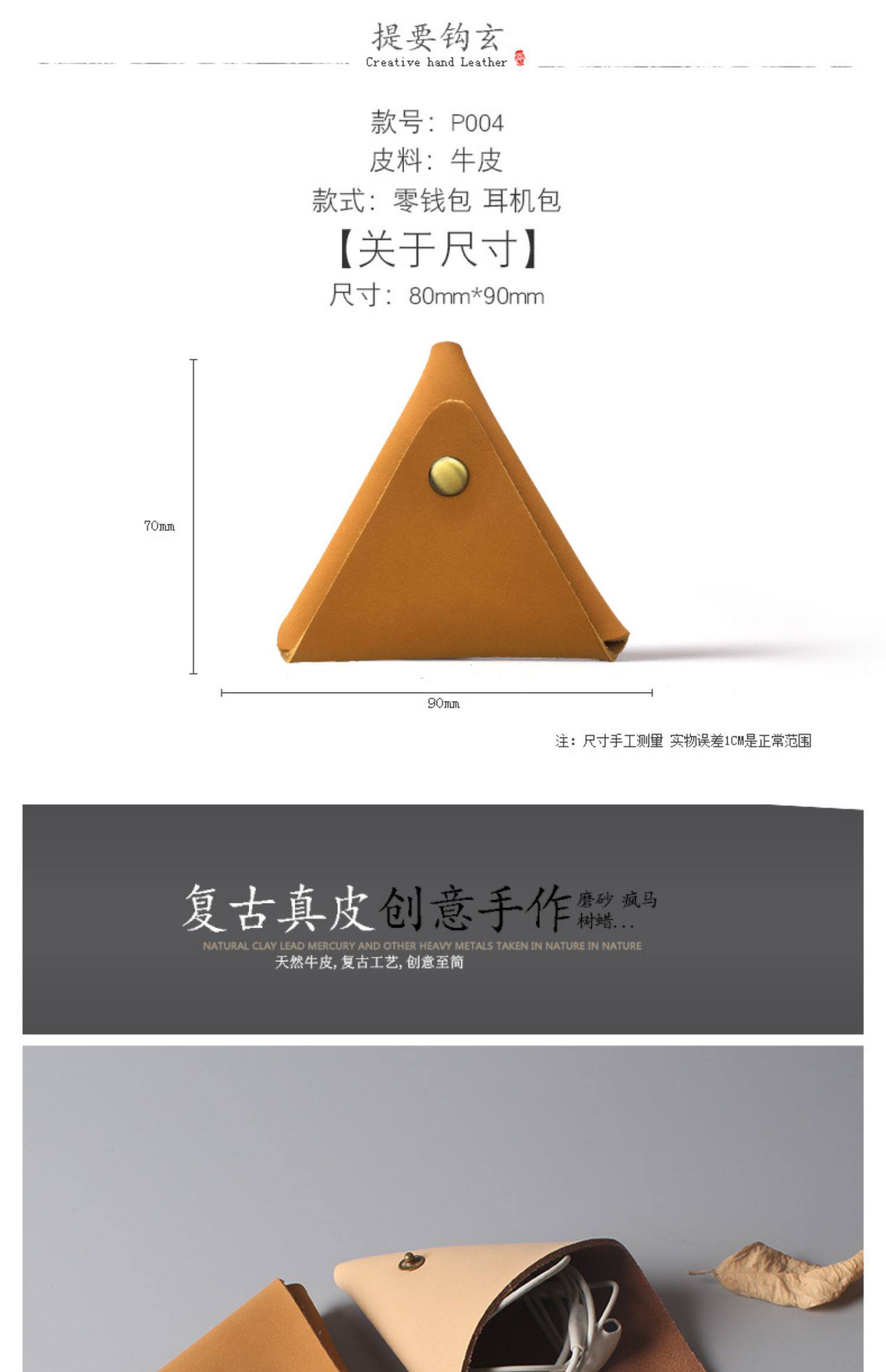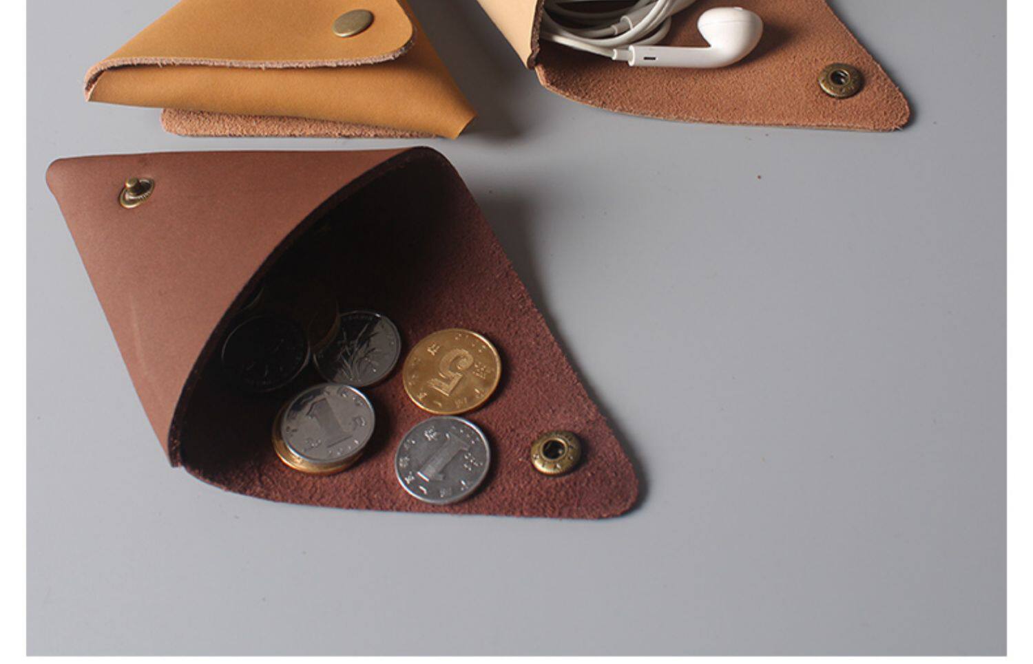 暄妍 Креативный кожаный ретро кошелек ручной работы подходит для мужчин и женщин, монеты, наушники, волчок для пальца, из натуральной кожи