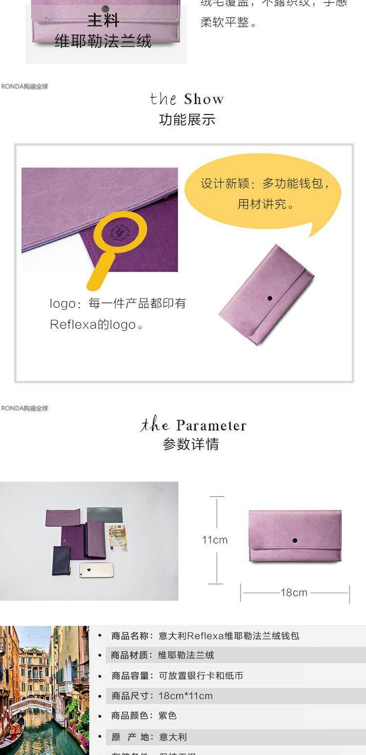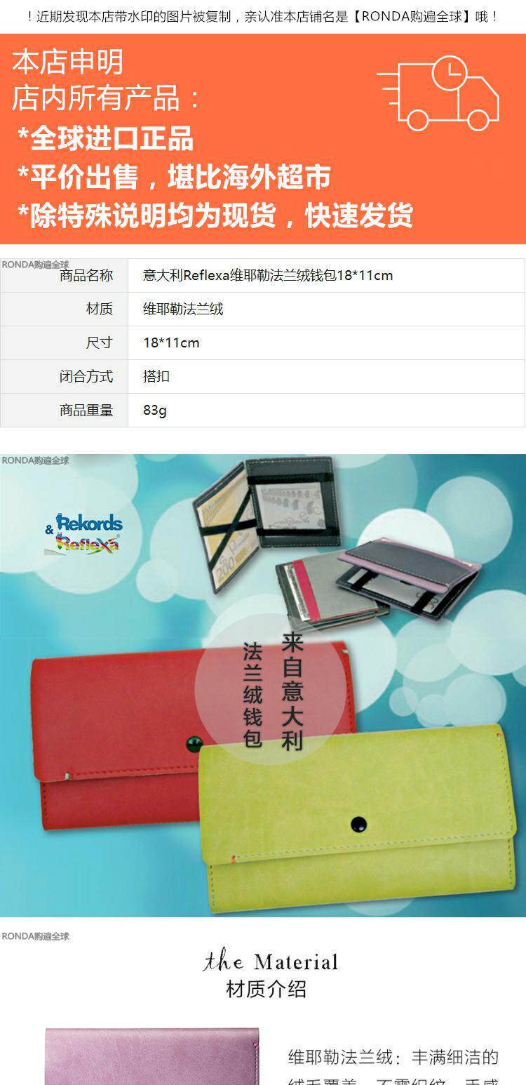 Импортированный из Италии фланелевый простой женский кошелек Reflexa Vielle, длинный кошелек с пряжкой, 18*11 см.