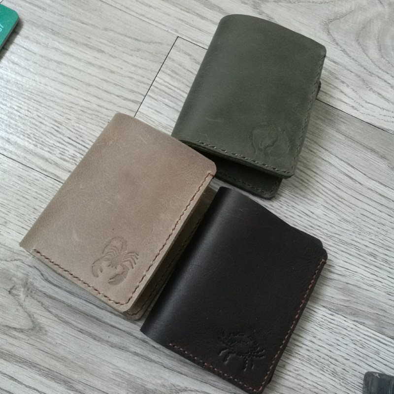 Мужской короткий кожаный бумажник, ретро кошелек, из натуральной кожи, воловья кожа