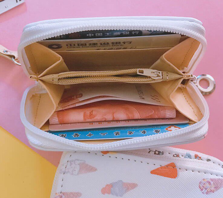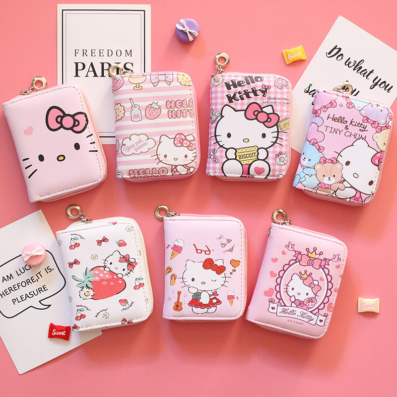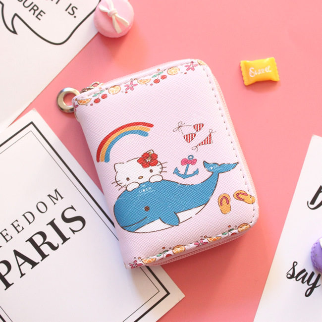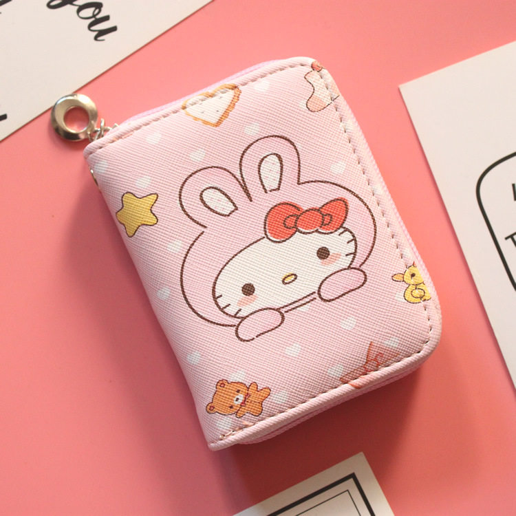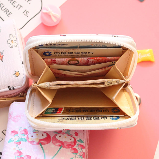 Мультяшный маленький короткий кошелек, бумажник с молнией, розовая сумка через плечо, свежие монеты