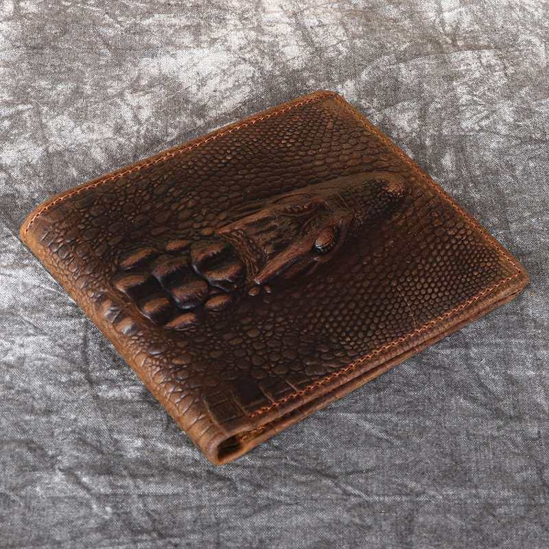 Характеристики и размеры: 11,5*9,5*1 см. Материал: кожа Crazy Horse, первый слой коровьей кожи, прессованная голова крокодила.