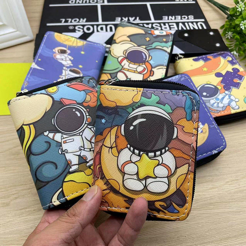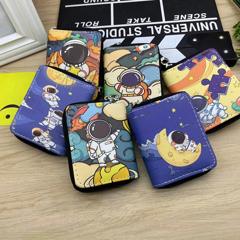 Космический милый кошелек подходит для мужчин и женщин, короткий маленький картхолдер с молнией