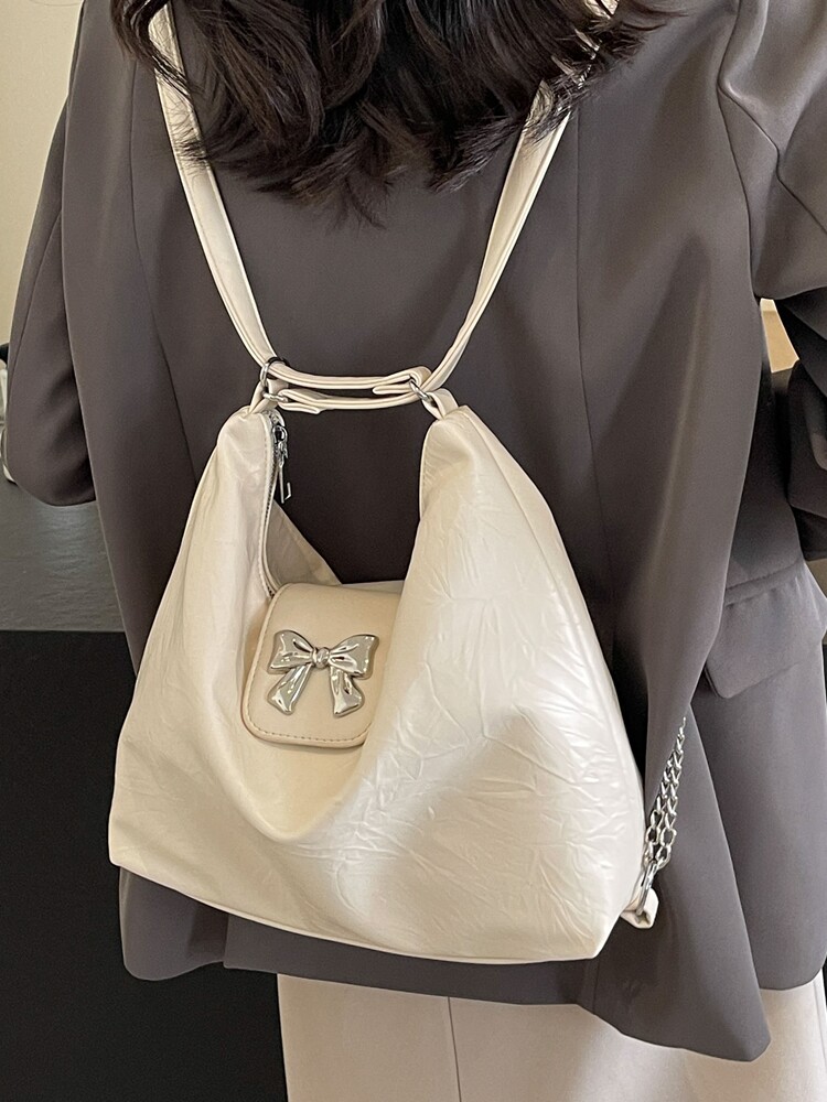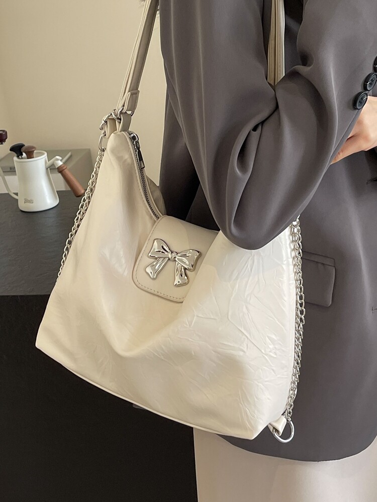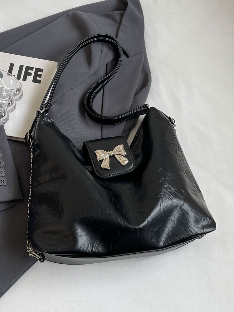 Вместительная и большая модная универсальная сумка на одно плечо с бантиком, надевается на плечо