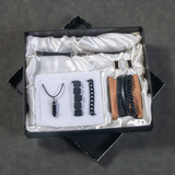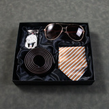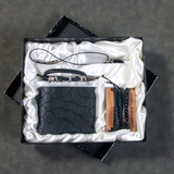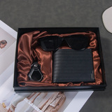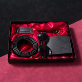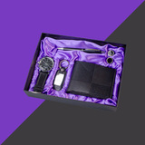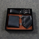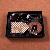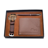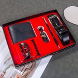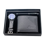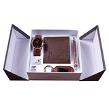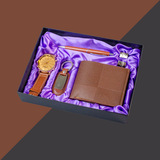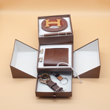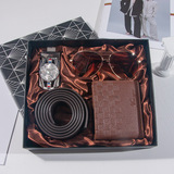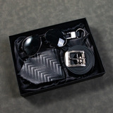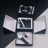 Кварцевые часы, мужской комплект, ремень, бумажник, духи, брелок, подарочная коробка, подарок на день рождения