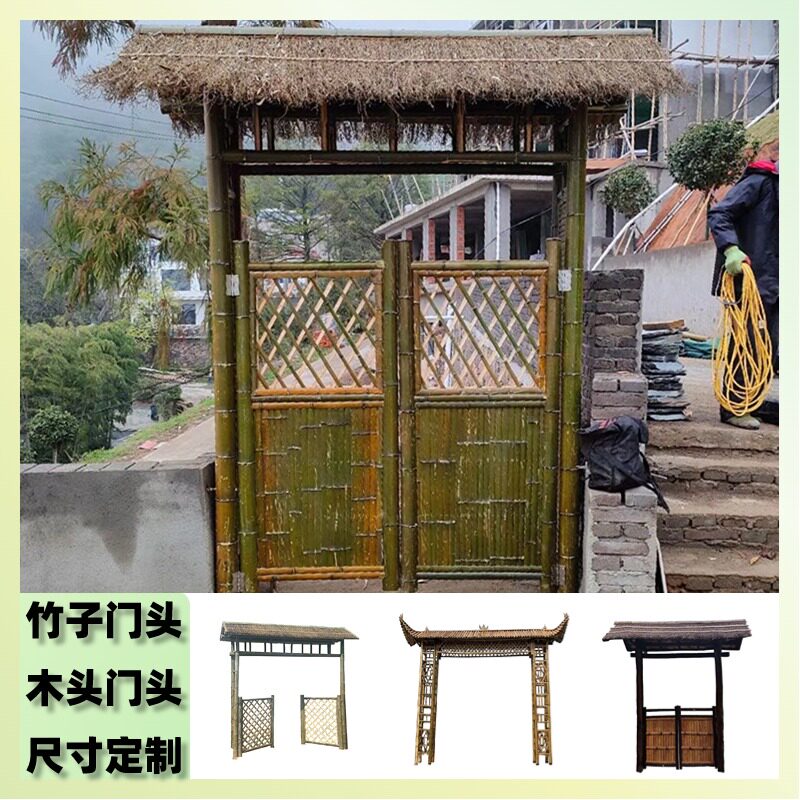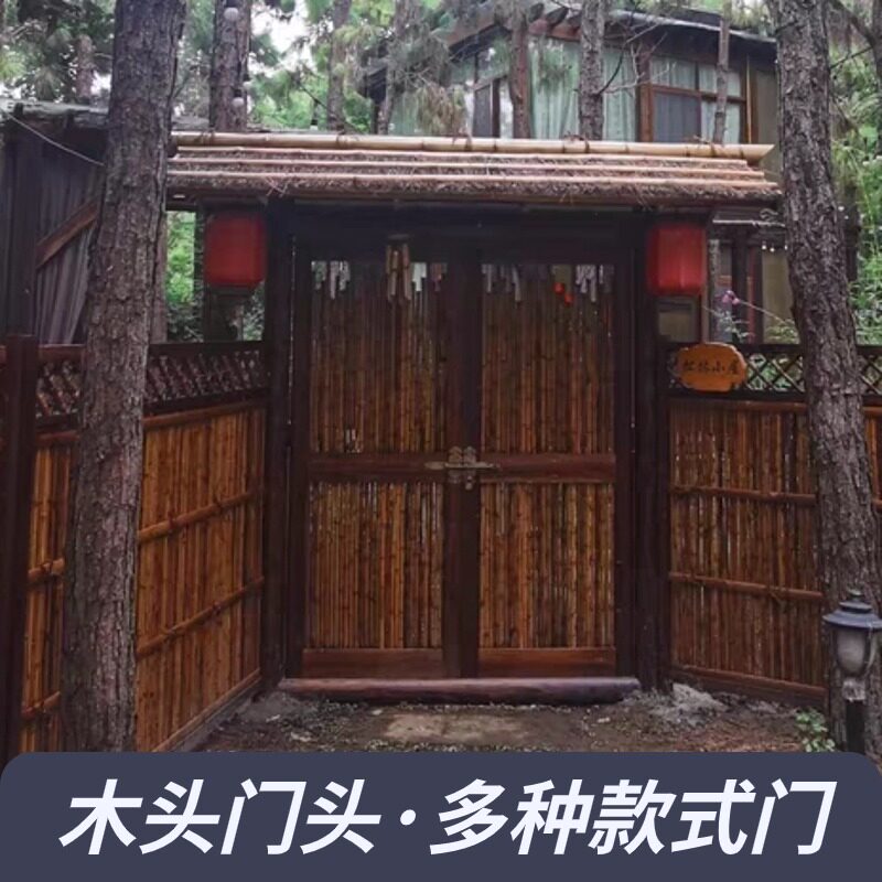 Сельские ворота ворот ворот модж ферма бамбук ворота на открытом воздухе двойные деревянные ворота внутренний двор ворота бамбуковые ворота бамбука