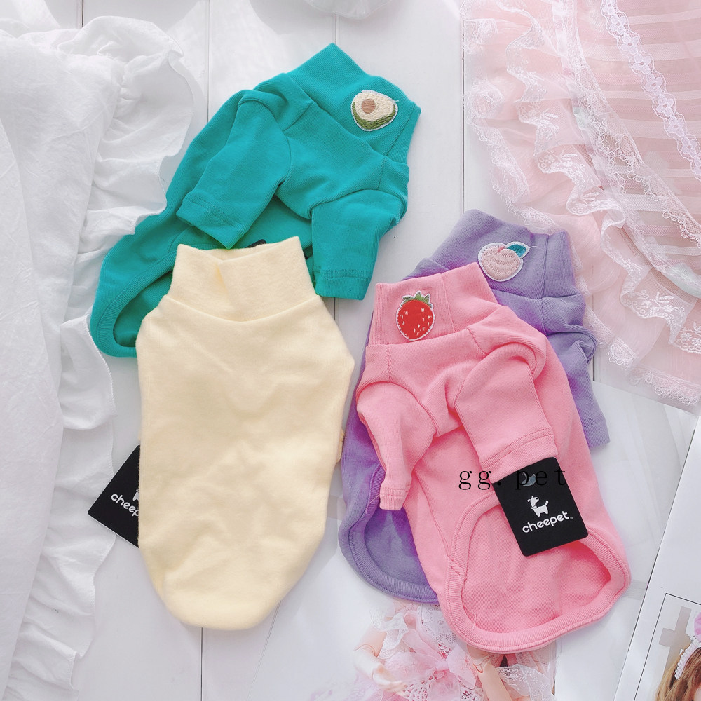 Одежда для домашних животных, осенняя и зима новые красочные фруктовые рисунки базовая рубашка водолазки, маленькая кошачья и собачья одежда в Йоркшире