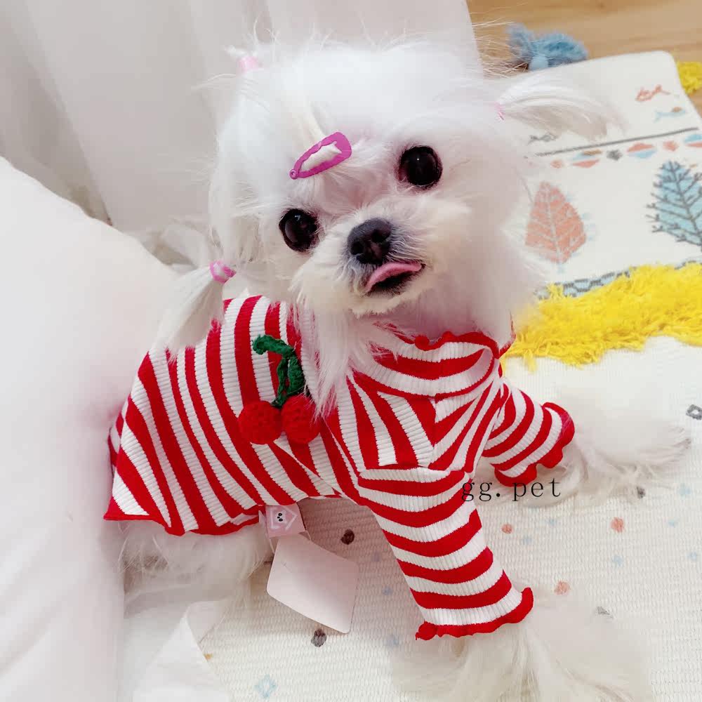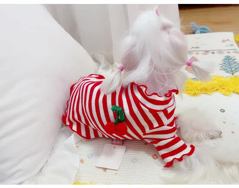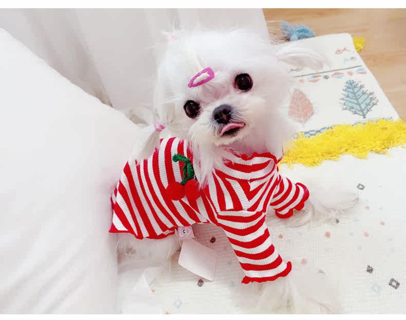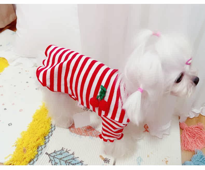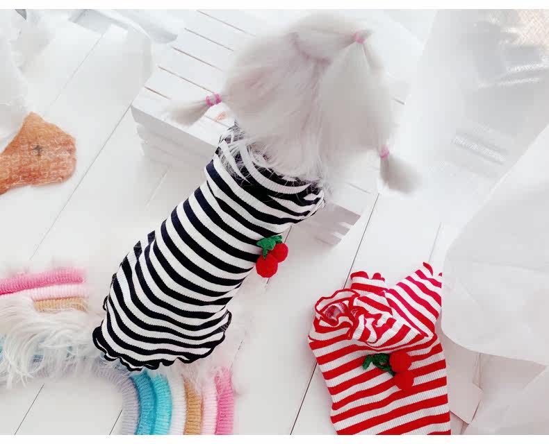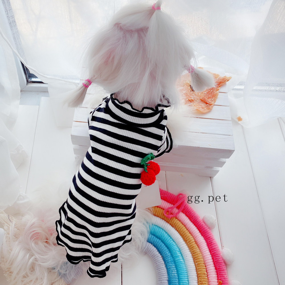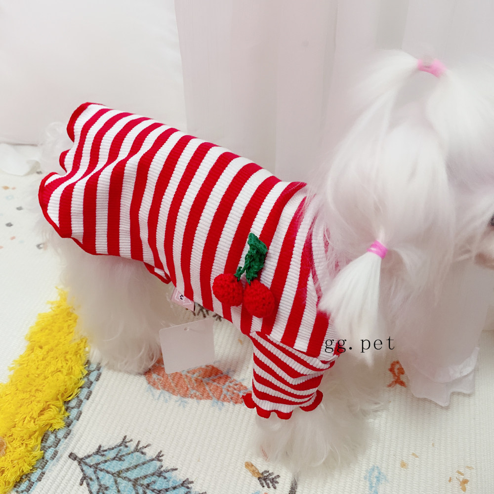 Симпатичная вишневая полосатая одежда для собак Pure Cotton Pet Рубашка Тедди Bomeka York Summer Cat Spring и лето две юбки