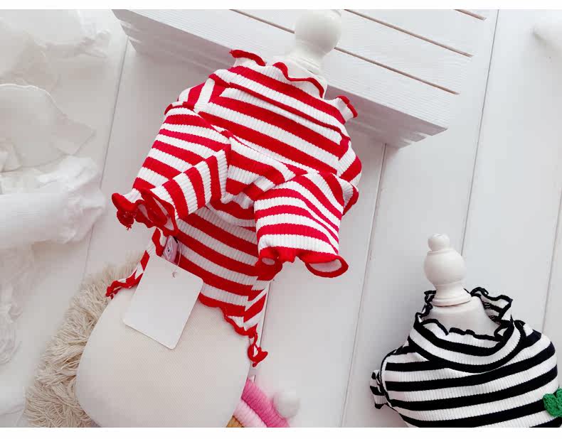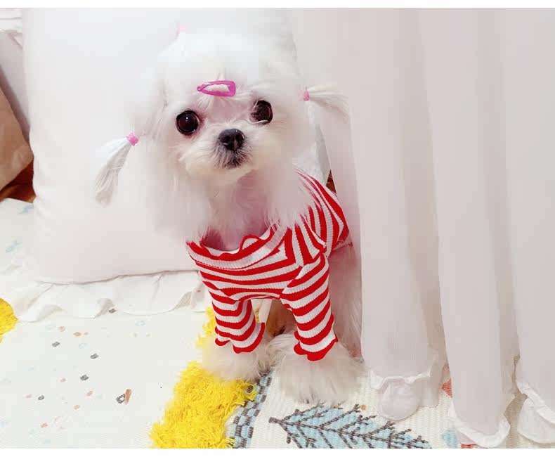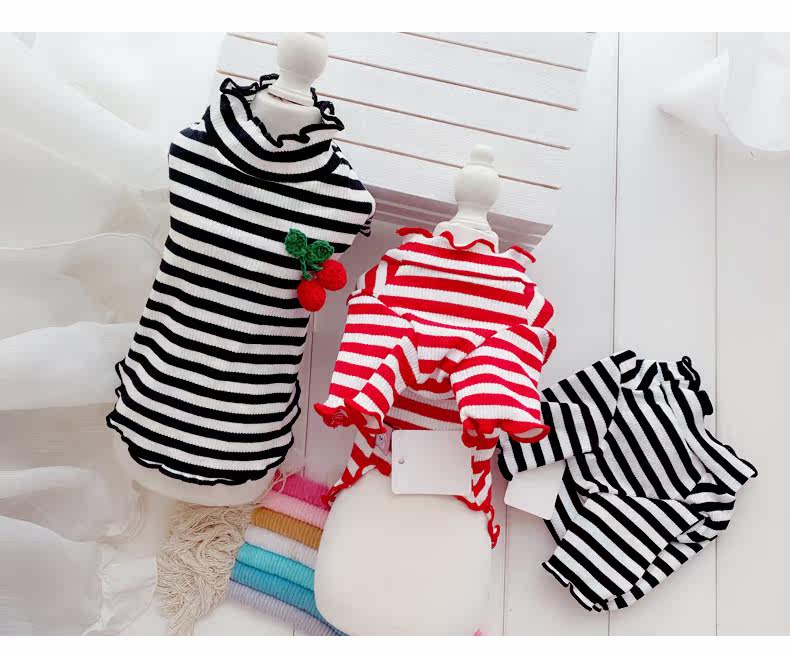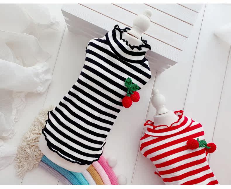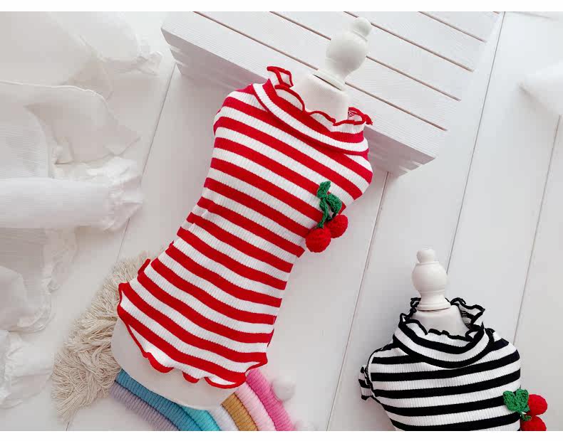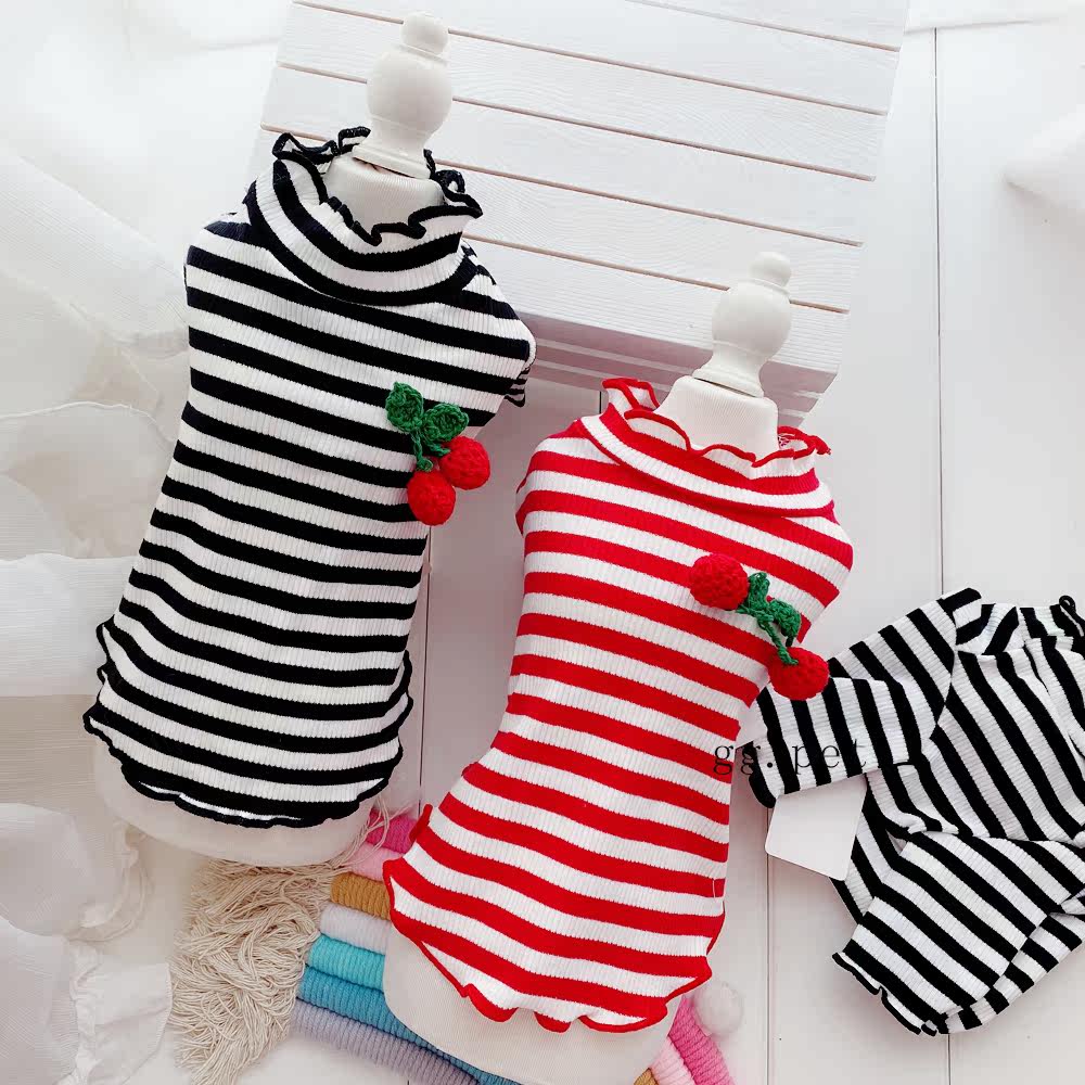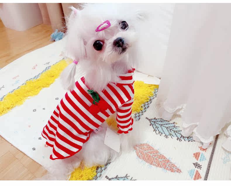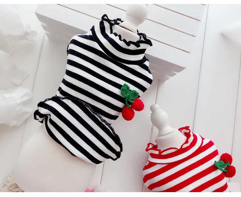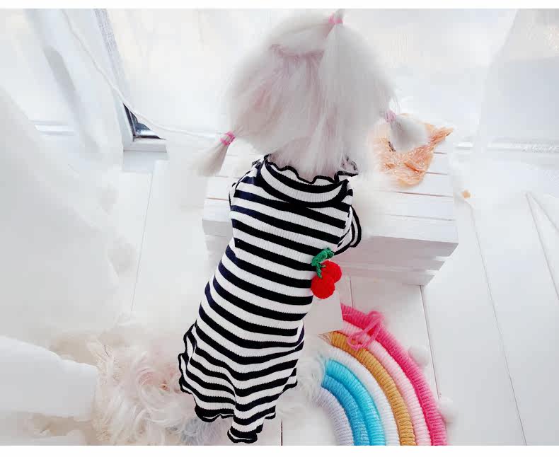 Симпатичная вишневая полосатая одежда для собак Pure Cotton Pet Рубашка Тедди Bomeka York Summer Cat Spring и лето две юбки