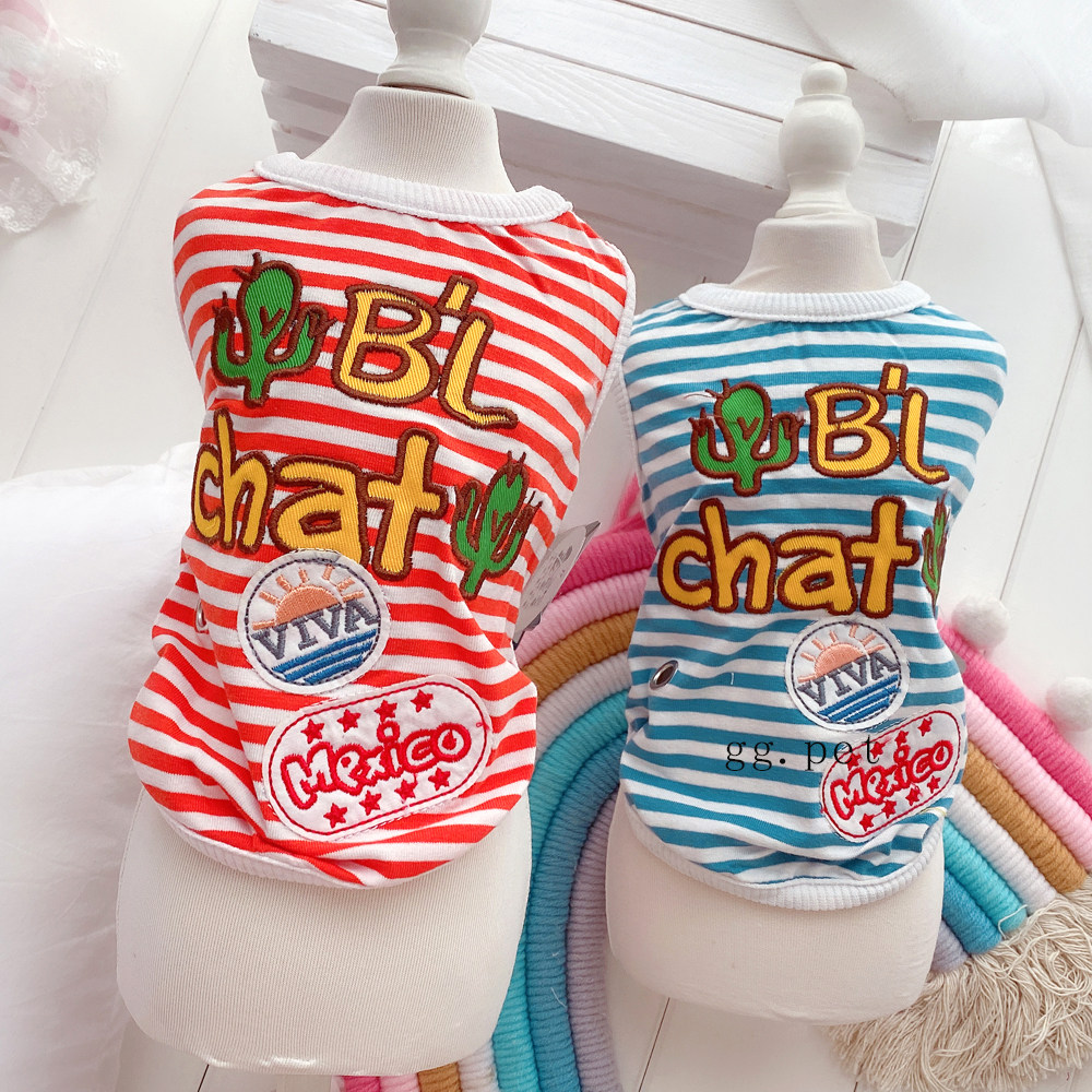 Полосатая трехмерная вышитая собачья одежда летняя жилетка хлопковая футболка для кошачья и собачья жилет