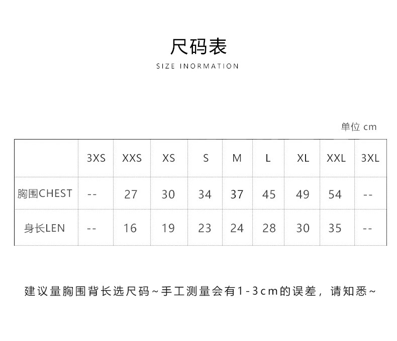 | Размер: | XXS/Bust 27 Back 16, XS/Bust Breaks 30 Длина спины 19 19, S/Bust 34 Back 23, М/бюст 37 длина спины 24, L/Bust 45 Back 28, XL/Bust 49 Back 30 Back 30, Xxl/грудь грудь 54 назад 35 |