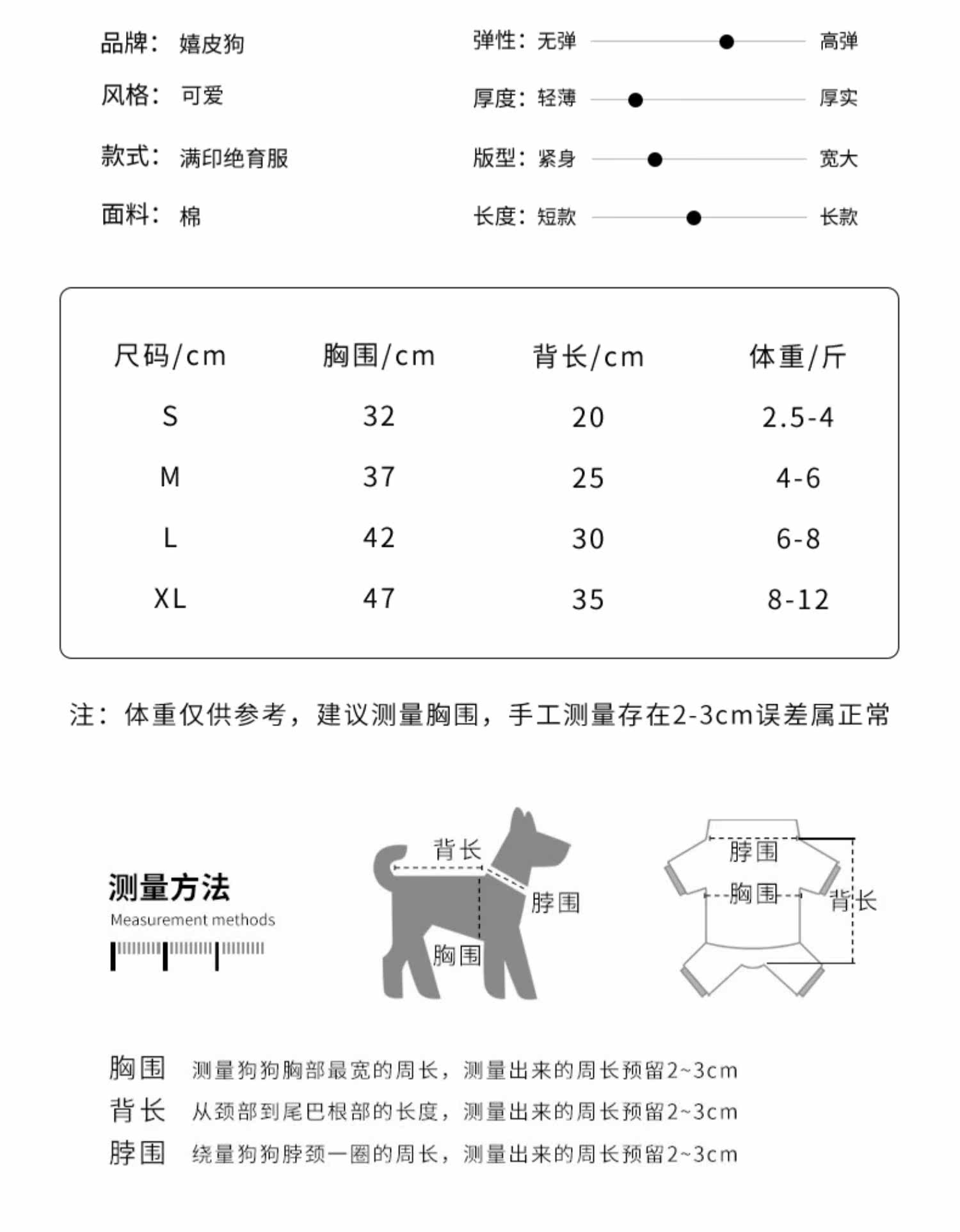| Размер: | S (предполагая 4 фунта) Две части уменьшены на 5 юаней., М (рекомендуется быть в пределах 6 фунтов) удобно и дышало., L (рекомендуется быть в пределах 8 фунтов) рекомендуется вымыть и изменять., XL (рекомендуется в пределах 12 фунтов) лучше, чем антибитское кольцо. |