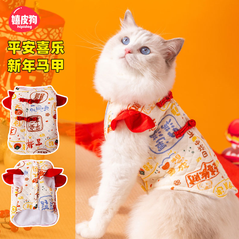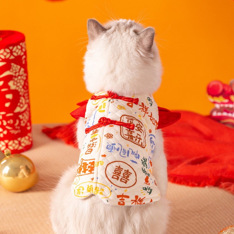 ПЭТ -кошки Новый год, полная печать, рукава для мухи и бархатный жилет Anti -Hair Winter Olde, Серебряная градиент -марионетка Сиамский котенок