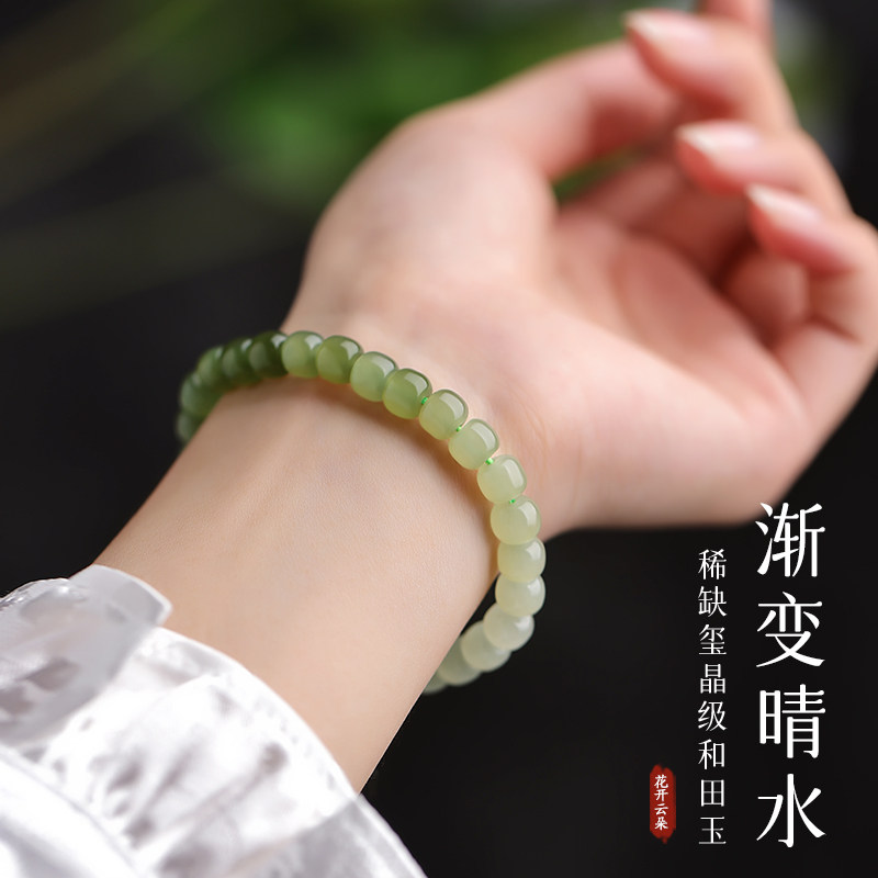 Натуральный браслет из нефрита, бусины, ювелирное украшение, легкий роскошный стиль, подарок на день рождения