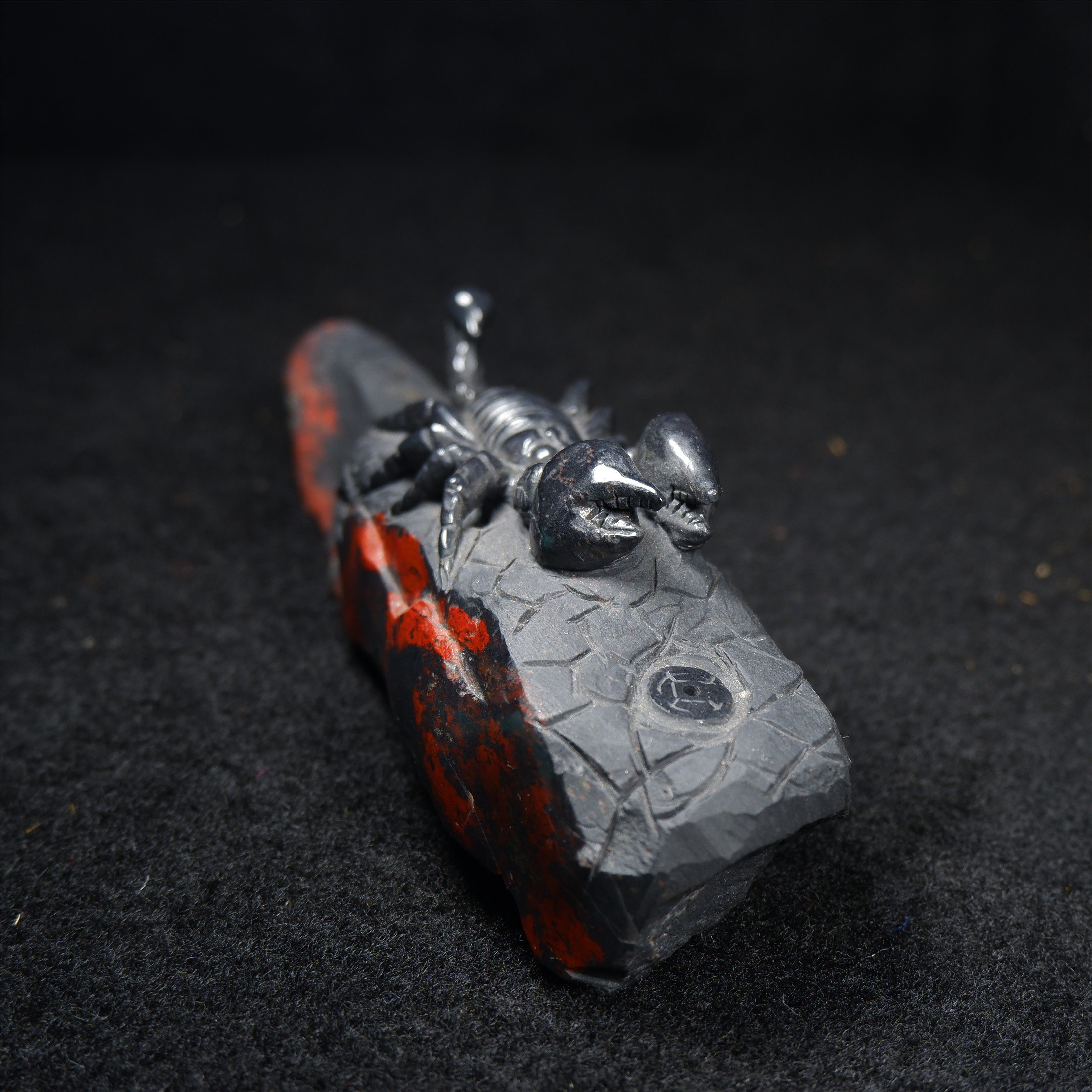 Куриная кровь нефритовая грубая резьба, упаковочная упаковка, резьба ручной работы ручной работы, одинокие черные чернокожие нижние красные