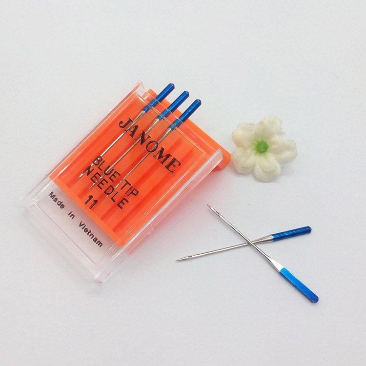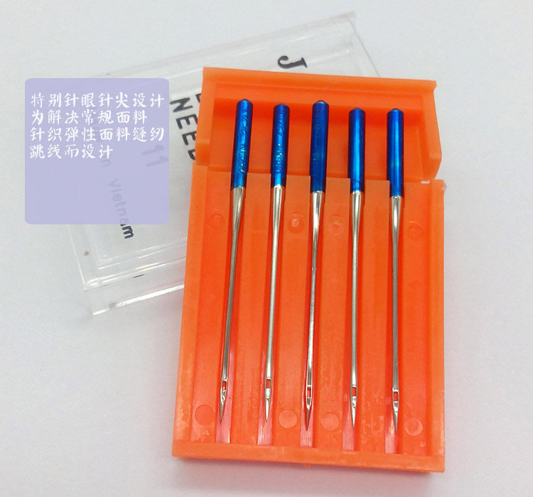 Синяя игла № 11;Универсальная машинная игла, подходящая для большинства тканей. Игольное ушко специально разработано для облегчения заправки нити и эффективно снижает натяжение верхней нити. Предотвратите пропуск стежков при шитье эластичных тканей.