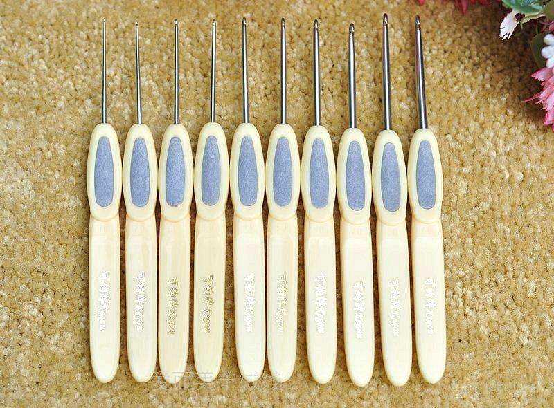 Существует 10 наборов иглах крючков, а эталонные спецификации: № 1 (0,9 мм), № 2 (1,1 мм), № 3 (1,4 мм), № 4 (1,6 мм), 4+ 4+№ (1,8 мм), № 5 (2,0 мм), № 6 (2,5 мм), № 7 (3,0 мм), № 8 (3,2 мм), № 9 (3,5 мм)