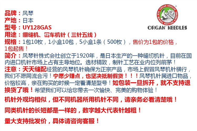Аутентичная ветряная пианино игла uyx128gas Большая и маленькая квадратная головка Трехловая пять пять -линейных стежков