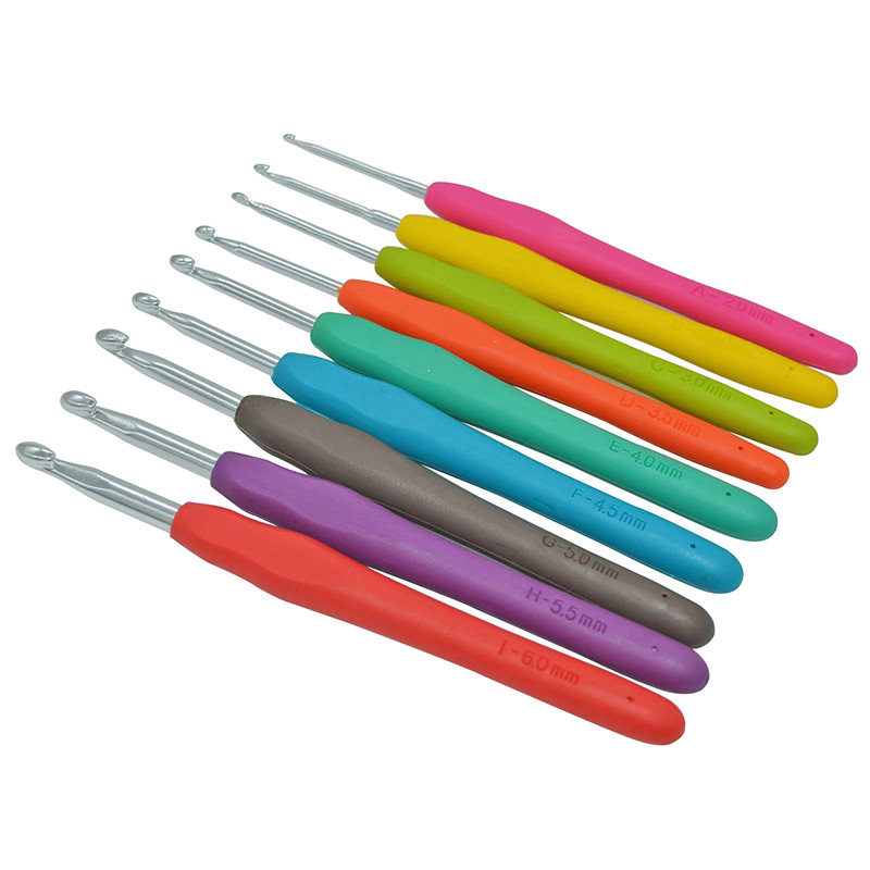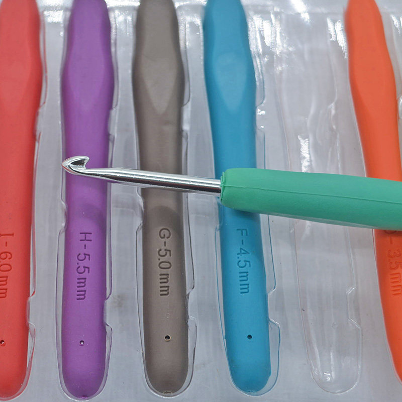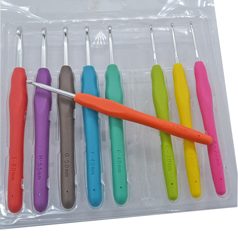 9 Цветная мягкая резиновая ручка крючков иглы одно -головка шерстяной иглы целый набор грубых мелких крючков игла алюминиевого крючка