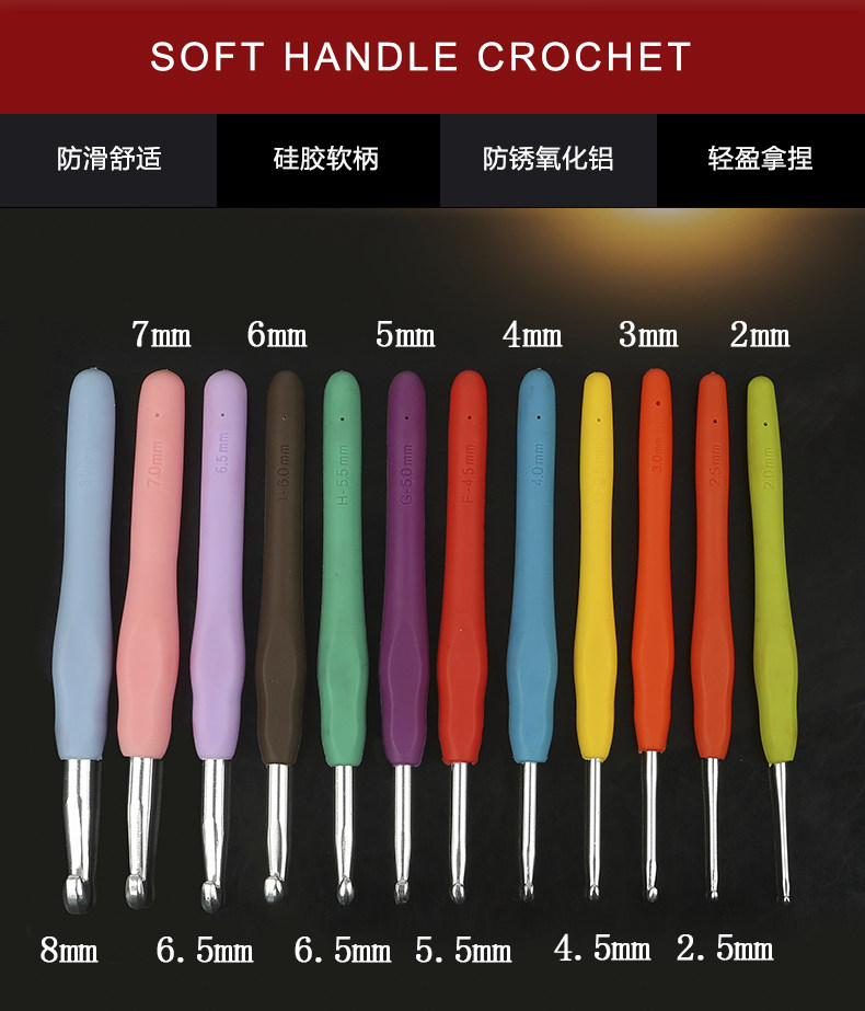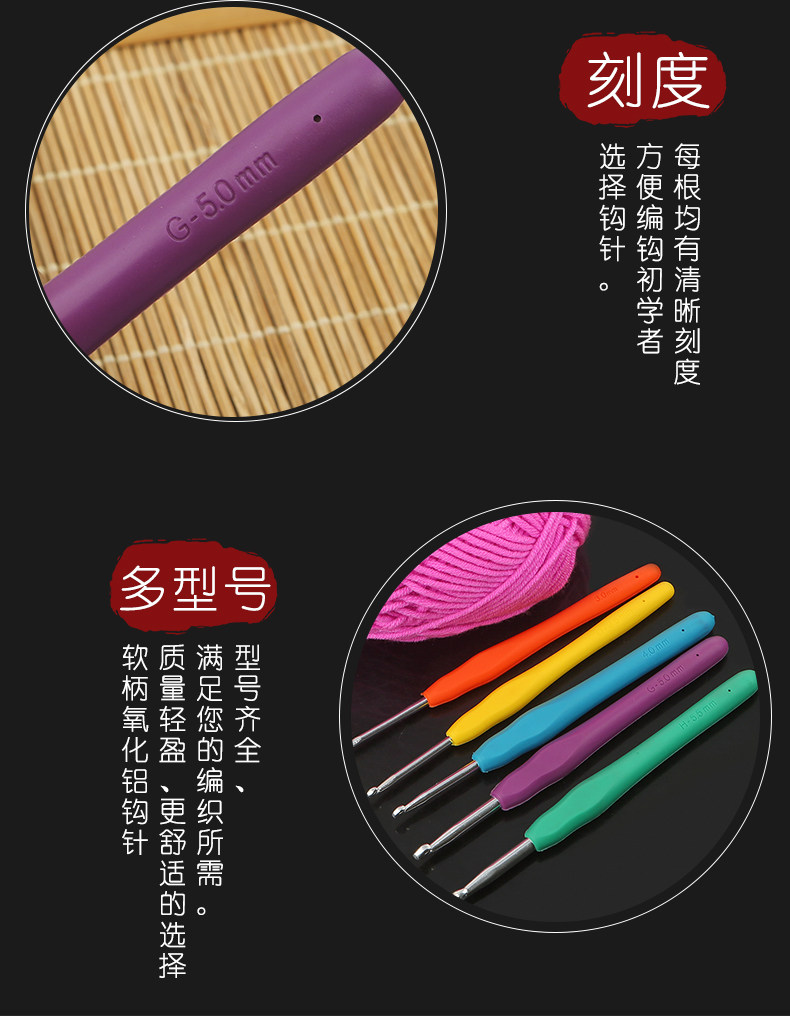 Крючок с цветной мягкой ручкой, инструмент для вязания из оксида алюминия, противоскользящий ремень с живым язычком, крючок для ниток для свитера, набор для вязания обуви.