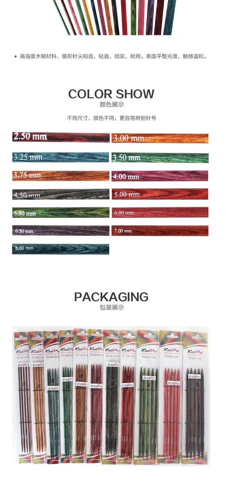 KnitProНовый цвет дереваdreamzМногоколорная вязаная игла, деревянный материал с высокой проливкой, конденсированная конструкция с помощью конуса, легкая, прочная, долговечная.Поверхность гладкая и гладкая, прикосновение мягкое, и вы можете наслаждаться ткачеством, а не усталостью в течение длительного времени.