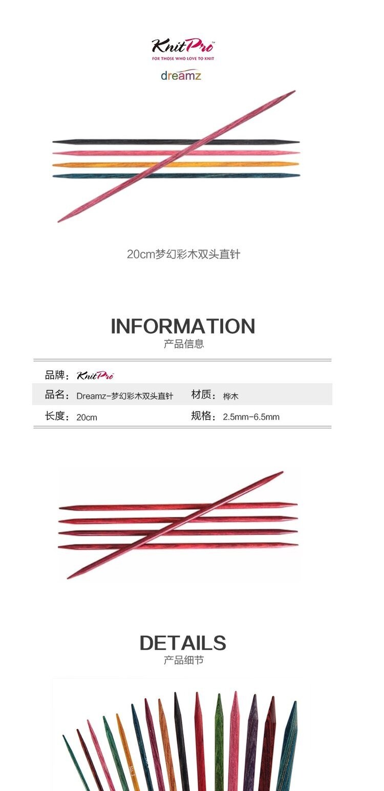 Импортный вязаный инструмент Knitpro Dreamz20cm с двойной головкой Березой Прямой Игл Прямая Иголь