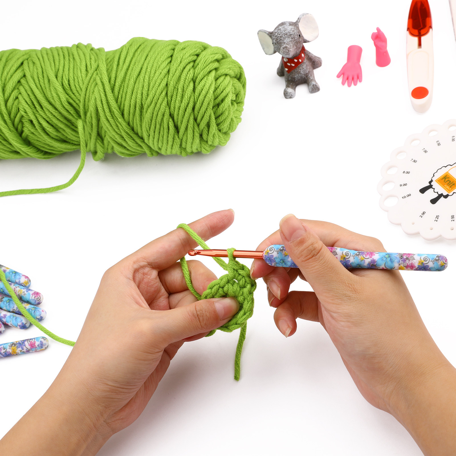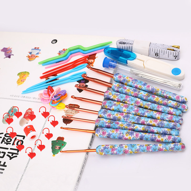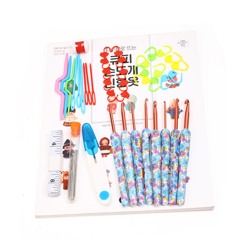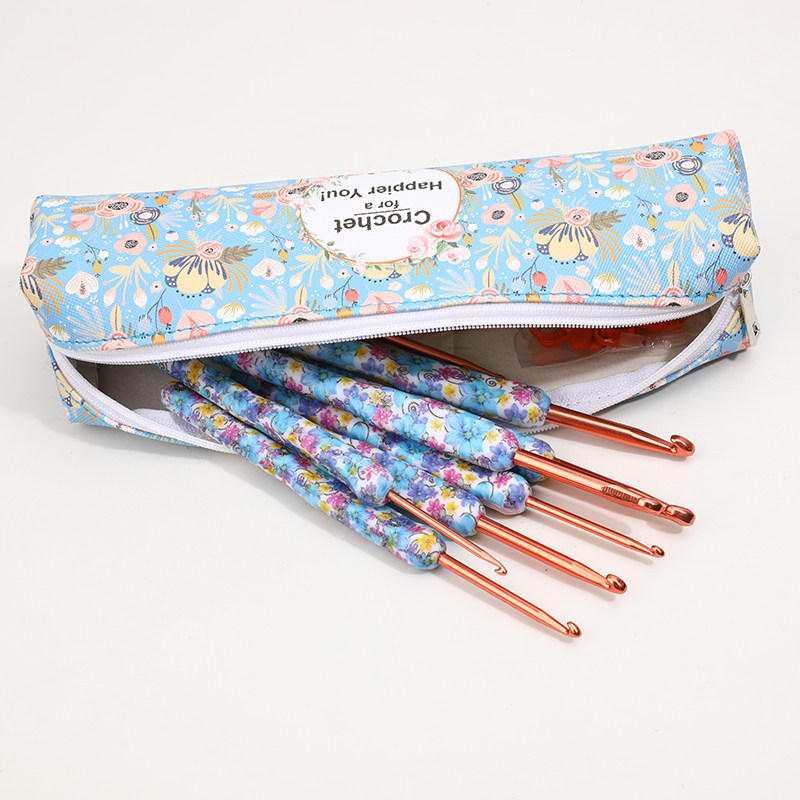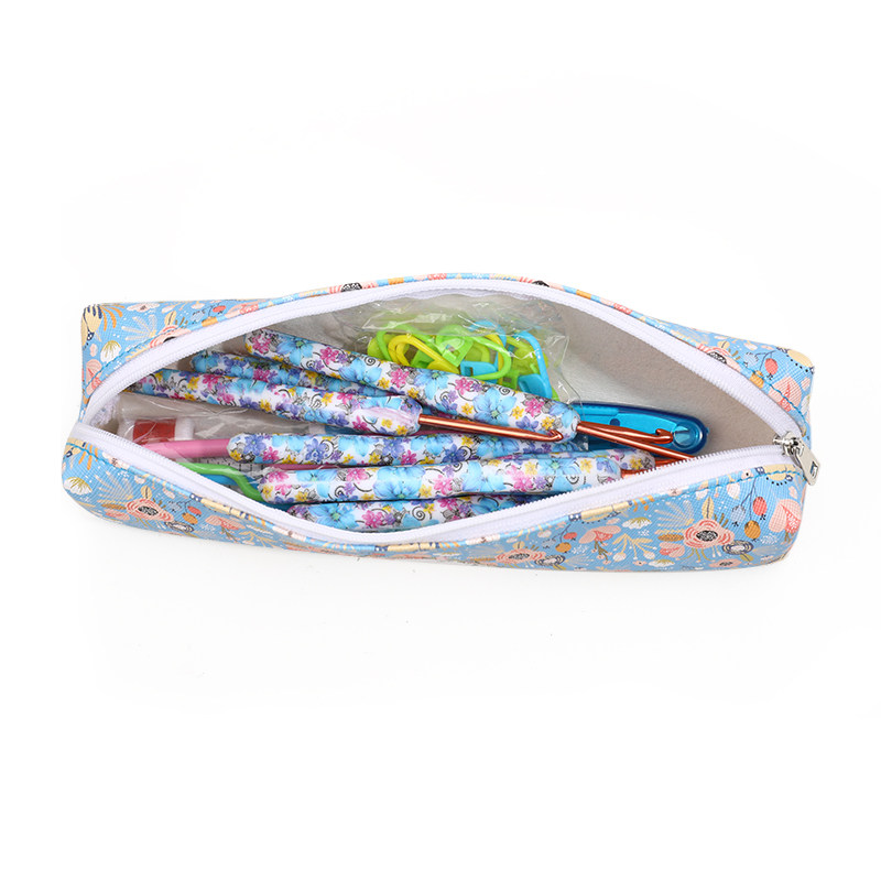 Синий крючок для вязания, комплект, плетеный набор инструментов, сумка-органайзер, цветочный принт, DIY
