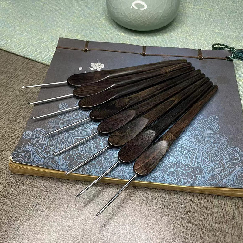 Крючок для вязания из черного дерева Эбен из сандалового дерева ручной работы из нержавеющей стали, плетеная кукла, свитер, обувь, цвет, DIY