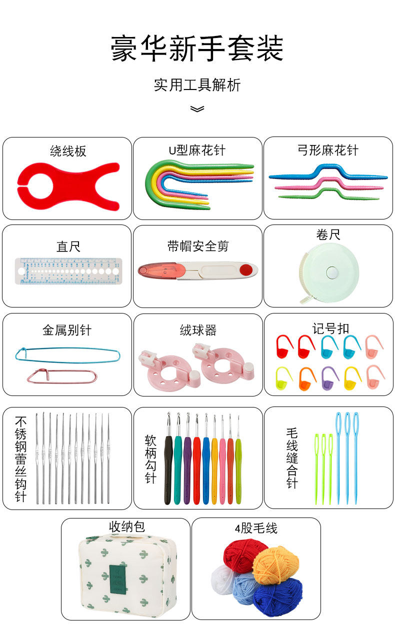 Крючок для вязания, плетеный набор инструментов для школьников для начинающих, набор материалов, свитер, иголка, полный комплект, DIY