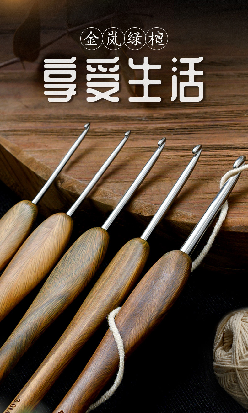 金岚 Крючок для вязания из зеленого сандала из сандалового дерева, иголка из нержавеющей стали ручной работы, плетеный шерстяной свитер, DIY
