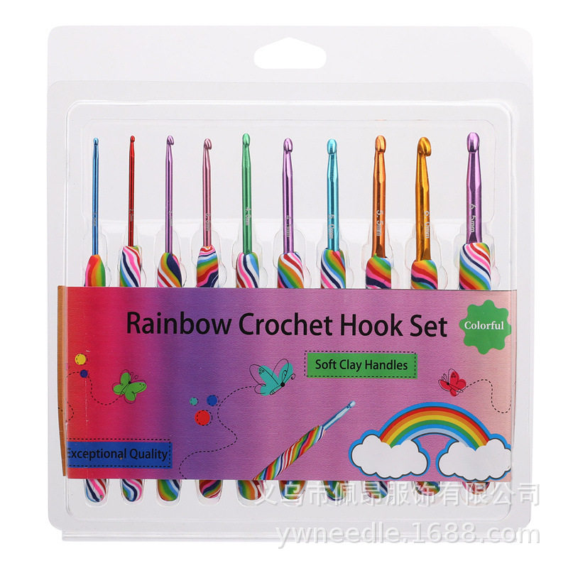 Радужный крючок для вязания, глина ручной работы, плетеная иголка, 10 шт