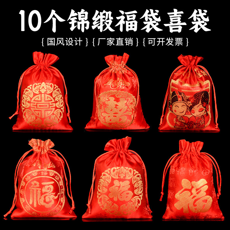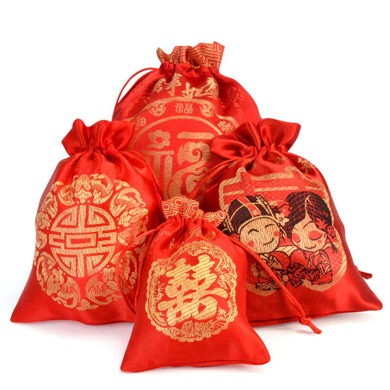 Красный шелковый мешочек, тканевый мешок, сумка, подарок на день рождения