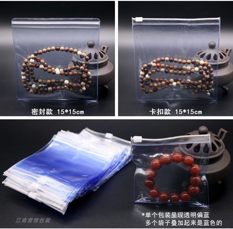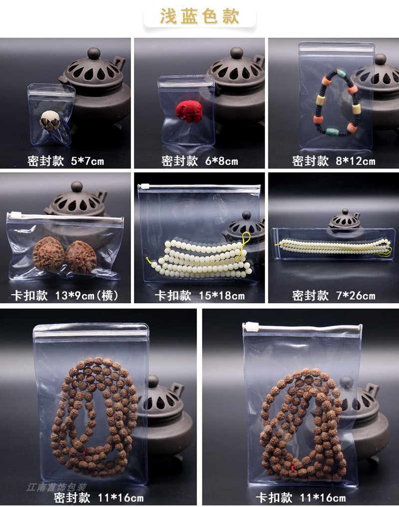 Прозрачный синий браслет из ПВХ с молнией, четки из круглых бусин, герметичный мешок, мешочек из грецкого ореха, увеличенная толщина