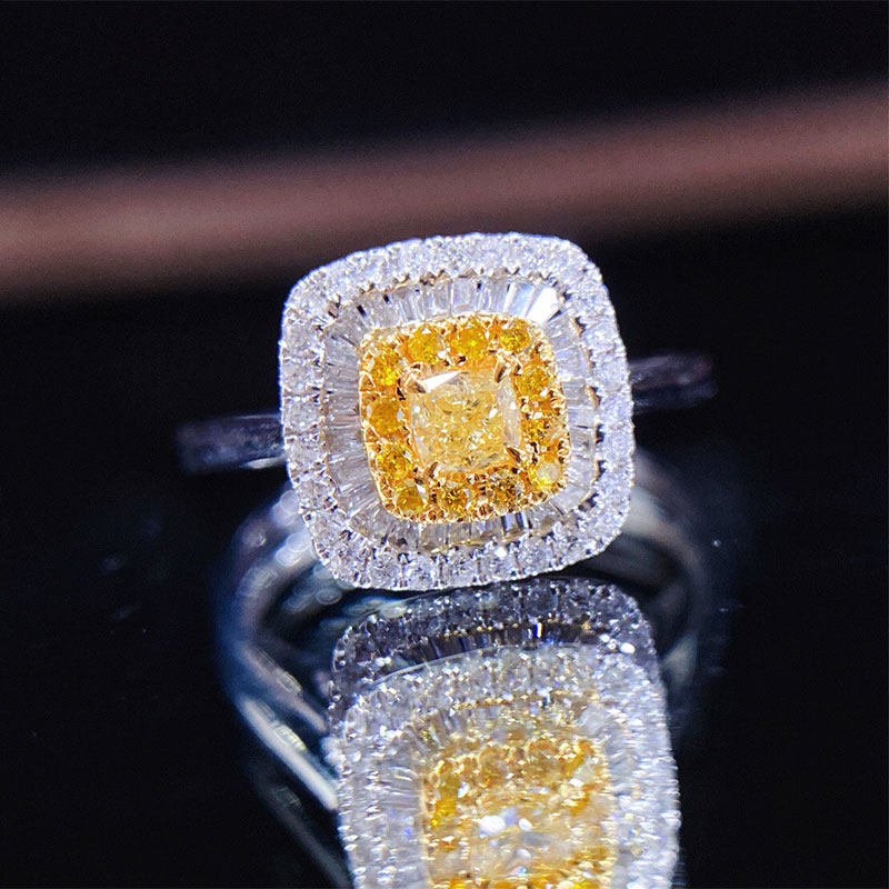 Ювелирное украшение, платиновая квадратная инкрустация камня, классическое бриллиантовое обручальное кольцо, белое золото 18 карат