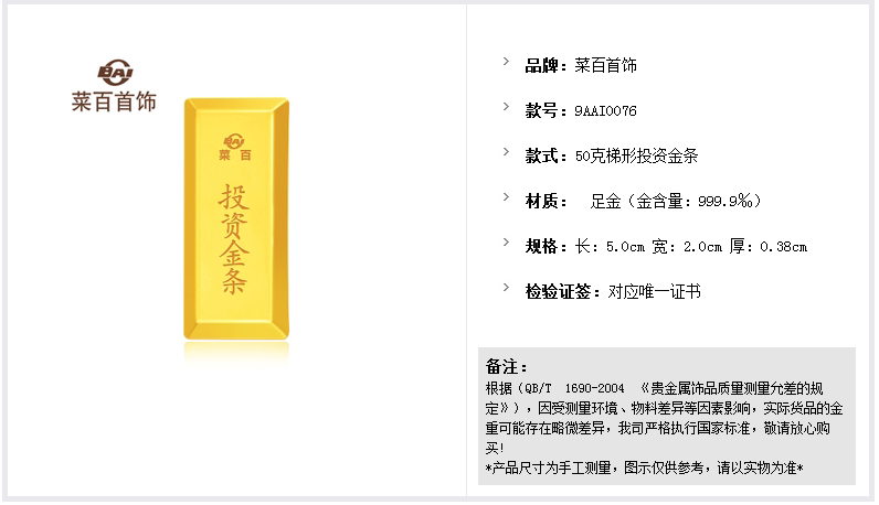 Продавец:菜百旗舰店