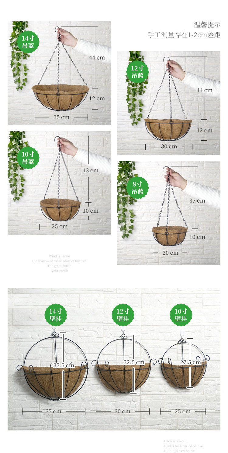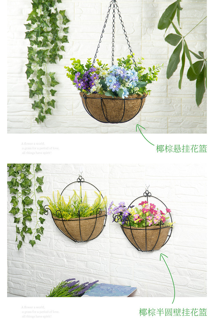 Железное цветочное укрытие наполовину бухтная корзина висящая настенная настенная настенная садовая садовая садовая цветочная горшка экологично