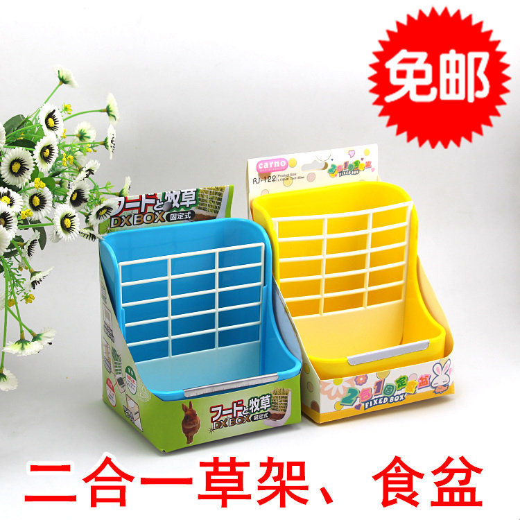 Бесплатная доставка 2-в-1 подставка для травы, миска для еды, кролик, шиншилла, морская свинка, подставка для травы, миска для еды, анти-грызущая, износостойкая, средний, большой, синий, желтый