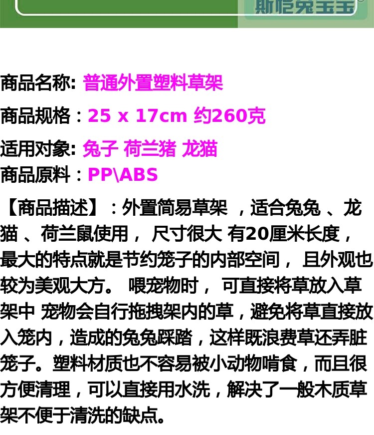 JP307 Простая травяная рама пластиковая внешняя соломенная кролика Тоторо Тоторо Голландская свиная трава ингредиент коробка кролика наружу может быть исправлена