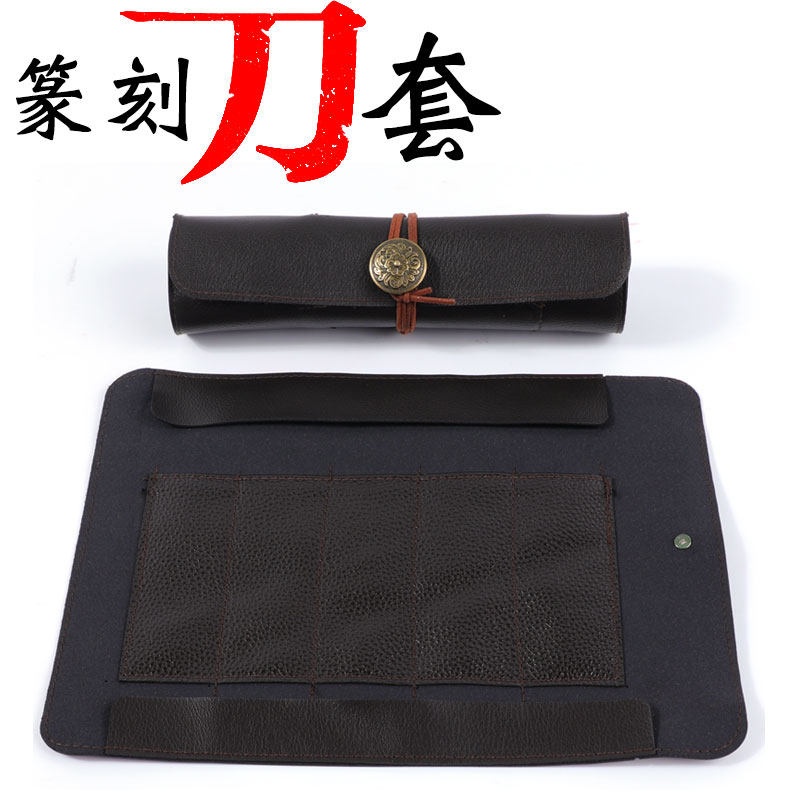 Уплотняя камня -уплотнение гравировать кожаный чехол Камень резной рукав с ножом может свернуть крышку с ножом мешок пакет для гравировки набор