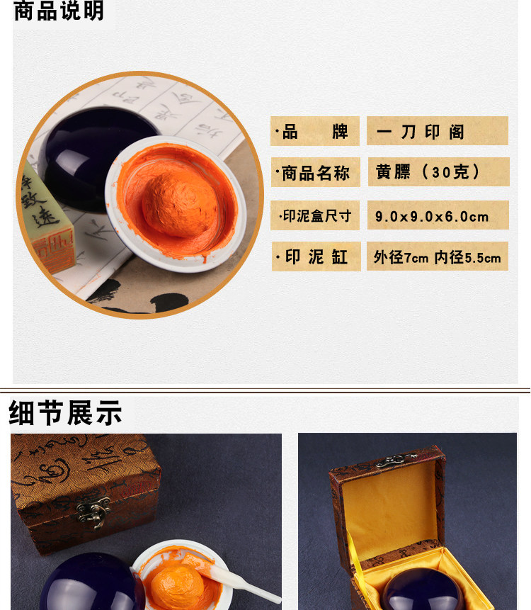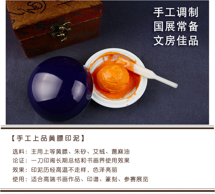 Чжэнь Шанпин Ручной Тиннабар Желтый 膘 30 граммов гервисной каллиграфии золотистого камня, Французская кантри -выставка, специальное участие