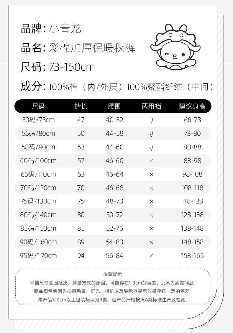小青龙 Детское хлопковое удерживающее тепло термобелье, демисезонные стеганые штаны для школьников и студентов подходит для мужчин и женщин для девочек, увеличенная толщина