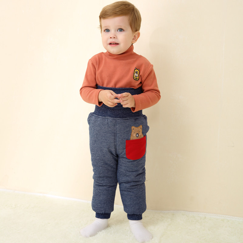 Стеганый пластырь для младенца, удерживающие тепло детские штаны, зимний базовый бандаж пупочный, с медвежатами, высокая талия