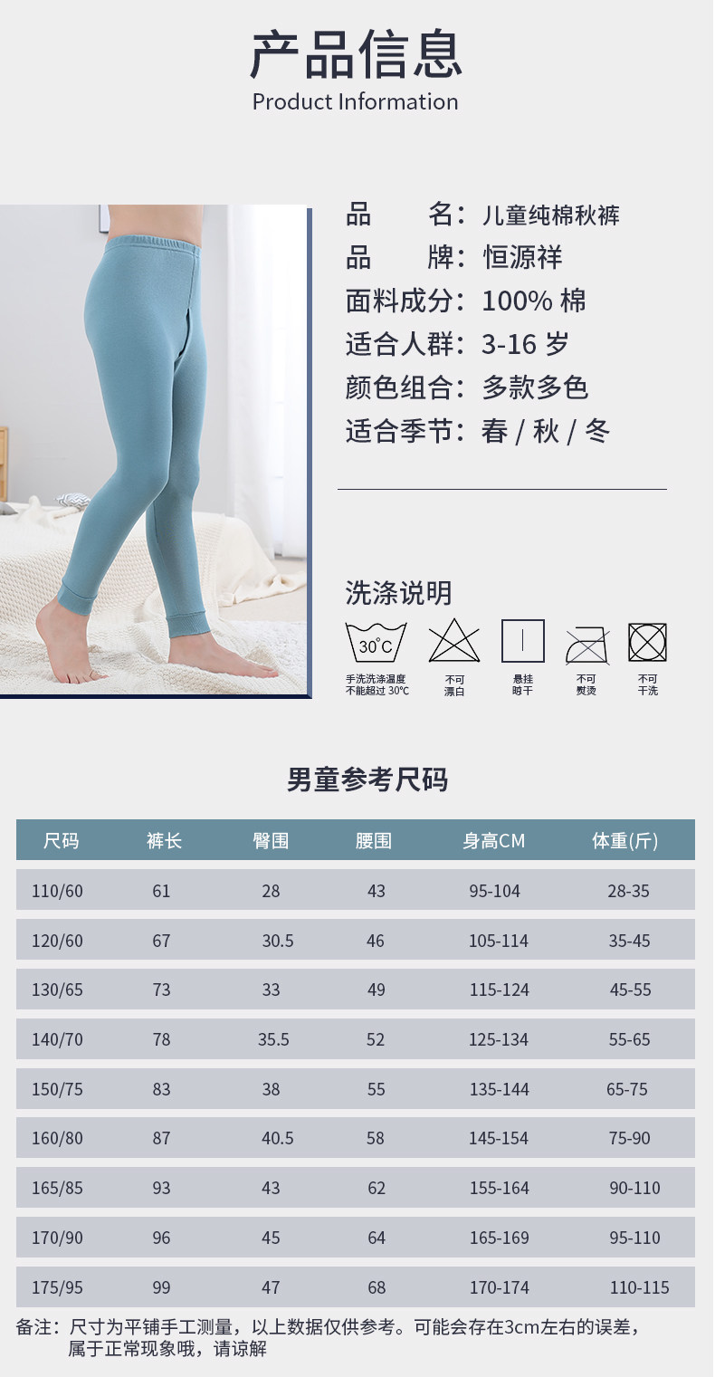 恒源祥 Детское хлопковое термобелье, хлопковые удерживающие тепло штаны для мальчиков, подходит для подростков