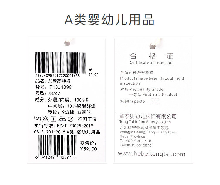 童泰 Детские хлопковые удерживающие тепло штаны подходит для мужчин и женщин, стеганый детский бандаж пупочный, нижнее белье, термобелье, высокая талия, увеличенная толщина