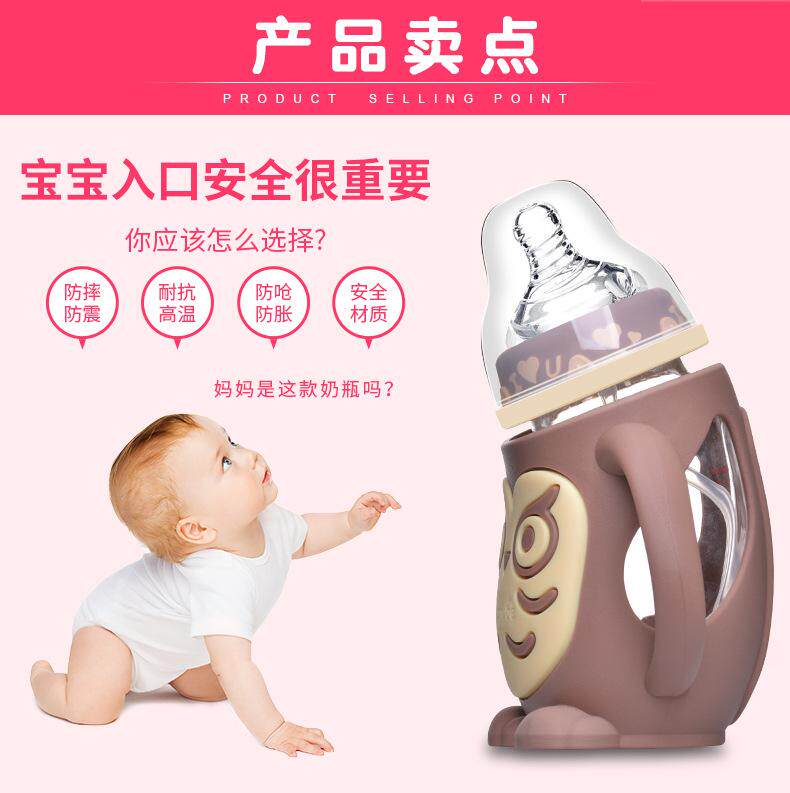 Детский стеклянный стакан со стаканом, бутылочка для кормления, детская трубочка со шкалой, защита при падении, 1 лет