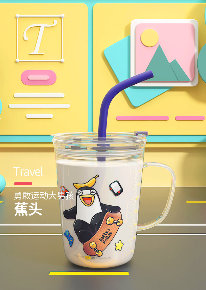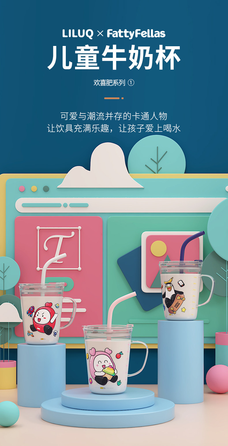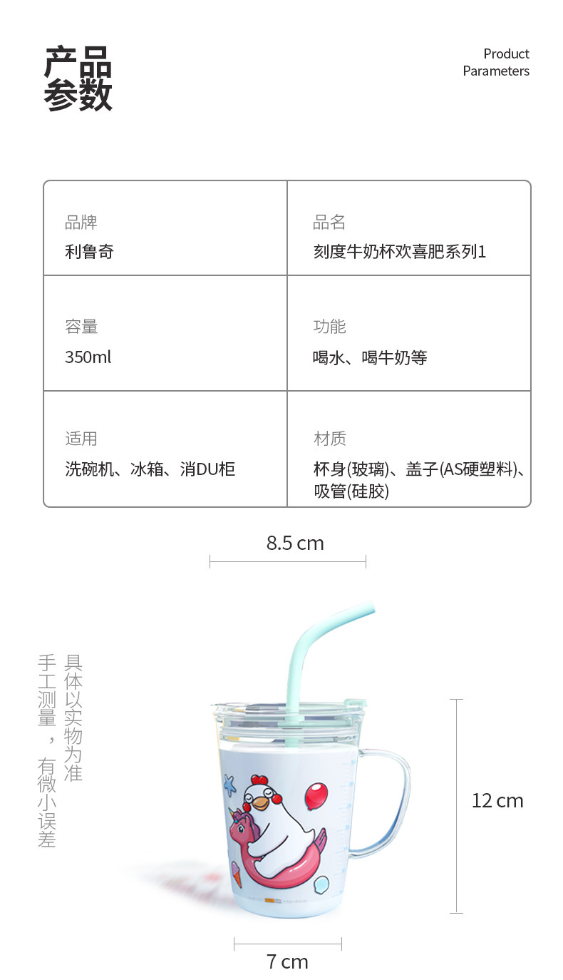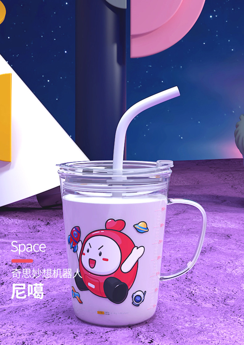 利鲁奇 Детская стеклянная мультяшная трубочка со стаканом со шкалой