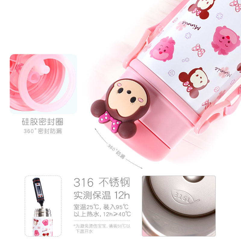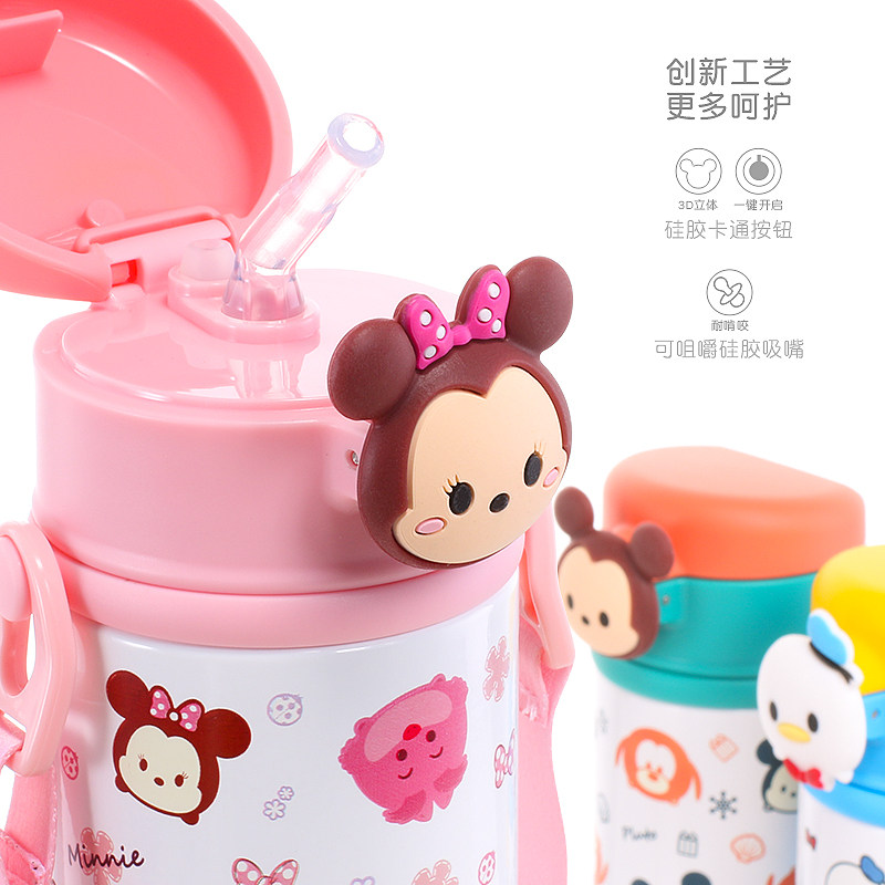 Дисней, детская трубочка, стакан из нержавеющей стали, портативные герметические подтяжки для детского сада со стаканом, чайник