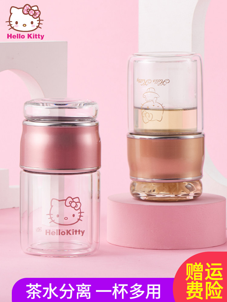 Hello kitty, стеклянный портативный маленький ароматизированный чай для путешествий для домашнего использования, чайная чашка, популярно в интернете