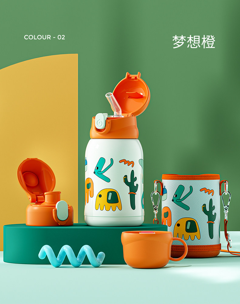 - Уделение сновидений чашка с изоляцией мечты оранжево-оранжевая крышка+питьевой чехлы+внутренняя крышка+набор чашек