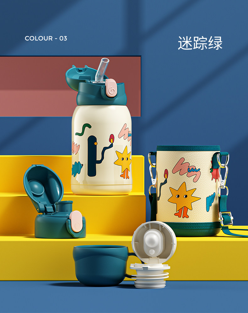 Детский портативный стакан со стаканом, трубочка подходит для мужчин и женщин для детского сада, чайник для школьников